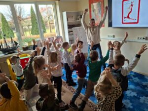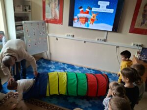 Aby zapewnić dzieciom odpowiednią dawkę ruchu, nauczyciele przeprowadzili „mikołajkową gimnastykę”. Seria ćwiczeń w świątecznym rytmie udowodniła, że aktywność fizyczna może być źródłem ogromnej radości i świetnym sposobem na budowanie zdrowych nawyków już od najmłodszych lat.