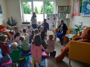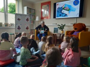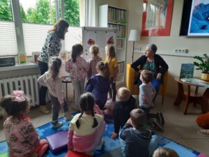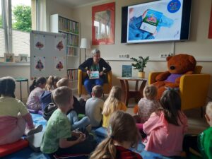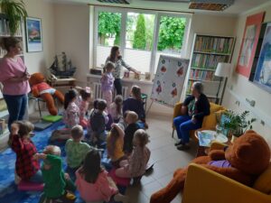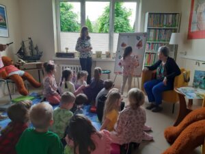 W dniu 3 czerwca 2025 odbyła się inauguracja akcji w bibliotece, którą uświetniła pani dr Katarzyna Madejska Dyrektor Muzeum Regionalnego w Zwoleniu. Pani Dyrektor odczytała dzieciom z grupy Muchomorki z Publicznego Przedszkola nr 1 bajkę pt. „Brzydkie kaczątko opisane wierszem przez Wiesława Drabika”. Dzieci podczas czytania zasłuchane w melodyjny głos czytającej żywo reagowały na treść utworu to śmiechem to smutną minką. Po odczytaniu Pani Dyrektor porozmawiała z dziećmi na temat przyjaźni i czytania.