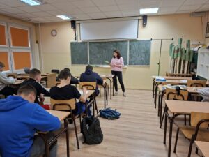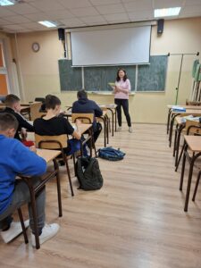 Podczas zajęć uczniowie poprzez informacje przedstawione w oparciu o prezentację multimedialną, dowiedzieli się jak świadomie budować własną mapę drogi edukacyjnej – od rozpoznania zainteresowań i predyspozycji, po wybór kierunku kształcenia, a także przyszłego zawodu. Prowadzące zwróciły uwagę na znaczenie systematycznej pracy oraz umiejętnego planowania nauki już na etapie szkoły podstawowej.