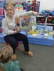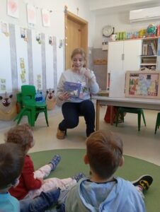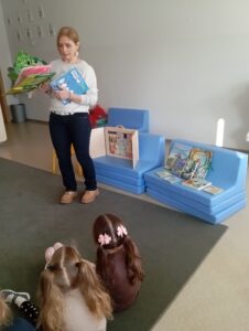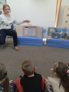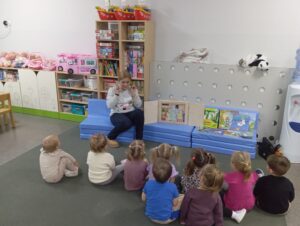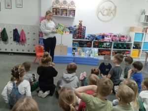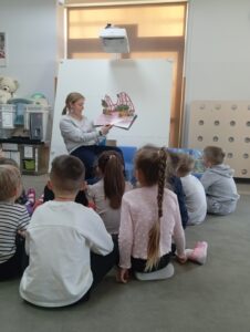 Zimowe dni i wieczory to czas, który w sposób szczególny sprzyja czytaniu dzieciom bajek. Dlatego nasza Biblioteka włączyła się w ogólnopolską akcję „Czytamy Muminki”. Ta bezpłatna inicjatywa czytelnicza zainicjowana w 2025 roku ma wyjątkowy charakter, ponieważ upamiętnia 110. rocznicę urodzin Tove Jansson oraz 60. rocznicę pierwszego wydania książki „W Dolinie Muminków” w Polsce. Aby przybliżyć przedszkolakom z Niepublicznego Przedszkola „Słoneczko” te sympatyczne, futerkowe stworzenia, Pani Marta – nauczyciel bibliotekarz – przeprowadziła zajęcia zatytułowane „Witajcie w Dolinie Muminków”.
