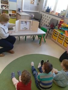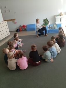 W dniach 20 i 21 stycznia 2026 roku dzieci z grup przedszkolnych Krasnoludki, Tęczowe Misie, Biedronki, Kotki i Kangurki miały okazję zapoznać się z bohaterami opowieści Tove Jansson za pomocą nastrojowego Teatrzyku Kamishibai. Gdy ciekawość dotycząca przyjacielskich trolli została już zaspokojona, przyszedł czas na wspólne wysłuchanie bajek o ich niezwykłych przygodach, takich jak „Muminki szukają domu” oraz „Rok w Dolinie Muminków”.