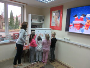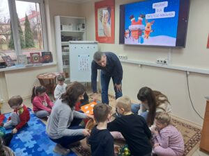 Przedświąteczne spotkanie, przygotowane przez nauczycieli bibliotekarzy, stało się dla przedszkolaków okazją do wprowadzenia w atmosferę Świąt Bożego Narodzenia poprzez literaturę, zabawę i aktywność twórczą.