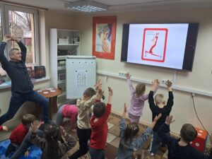 12 grudnia 2025 roku naszą bibliotekę odwiedzili wyjątkowi goście. W ramach popularnego cyklu zajęć edukacyjnych „Czytanie na dywanie” gościliśmy grupę „Myszki” z Publicznego Przedszkola nr 1 w Zwoleniu.