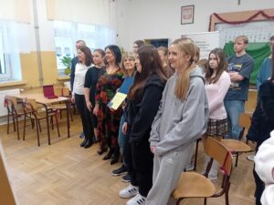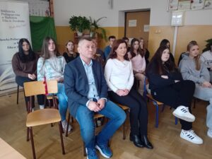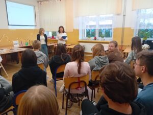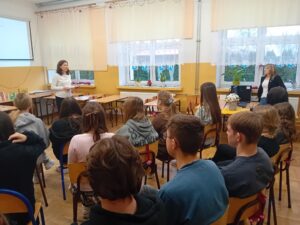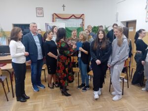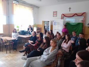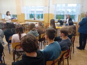 Młodzież Liceum Ogólnokształcącego im. Jana Kochanowskiego w Zwoleniu podczas spotkania z Panią Marta Marek